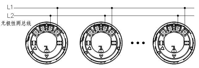 采用ZR-RVS-2×1.5mm2双绞线,回路两总线分别接在端子L1和端子L2上,不分极性。